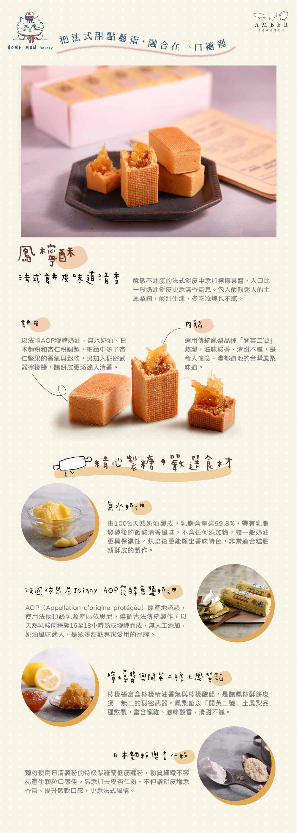 酥鬆不油膩的法式餅皮中添加檸檬果醬,入口比一般奶油餅皮更添清香氣息。包入酸韻迷人的土鳳梨餡,酸甜生津、多吃幾塊也不膩。